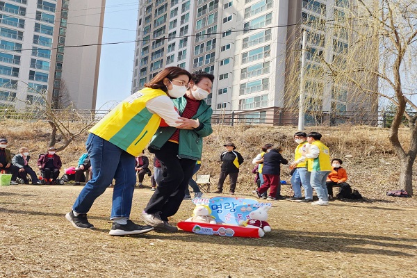 어르신들은 푸른 하늘 아래 봄 바람을 만끽하며 오재미 던지기, 과자따먹기, 노래부르기 등 다양한 프로그램에 참여했다.
